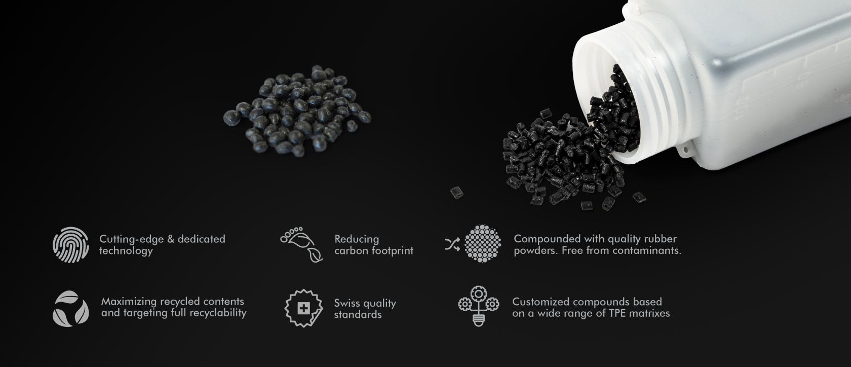 With TyreXol™ TPE, now also available in various colors, you can experience color variants, forsaking the paradigm that "tyre rubber only gives black compounds"